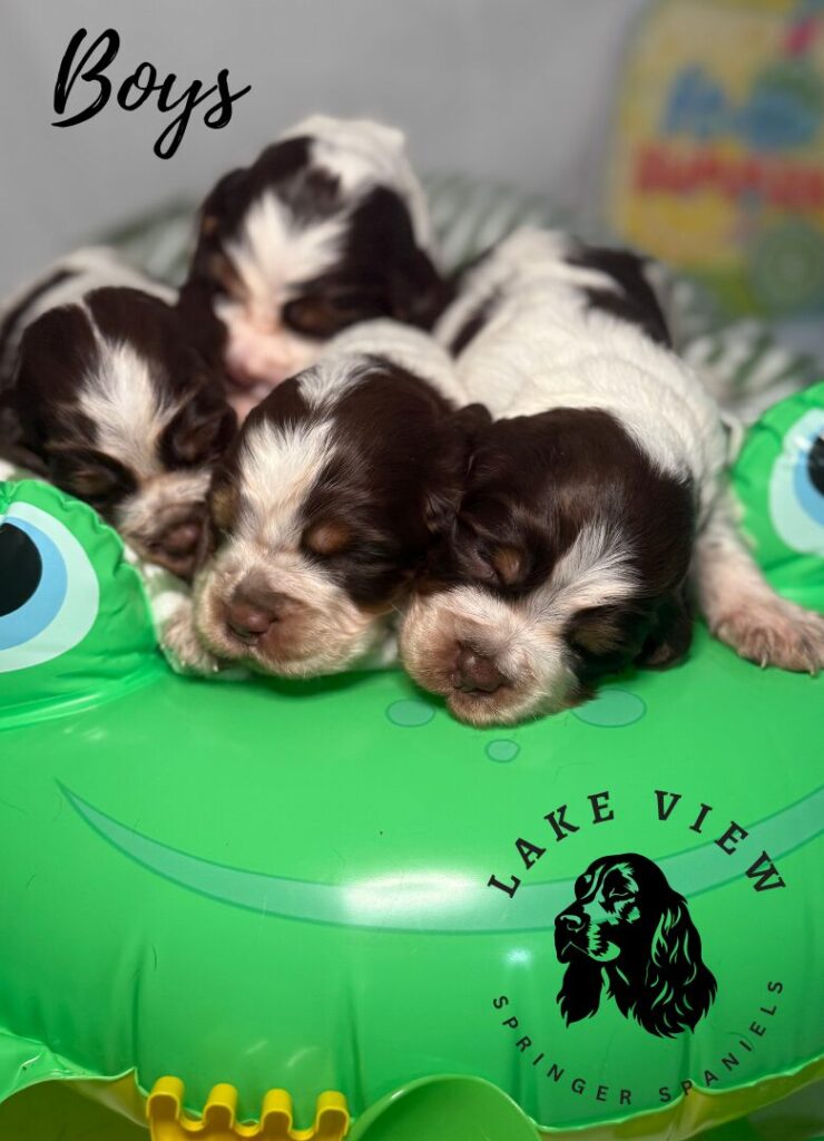 4 AKC registered English springer spaniel boys. They will have vet check, first set of vaccines, microchip, health guarantee. RTG 8-1-25