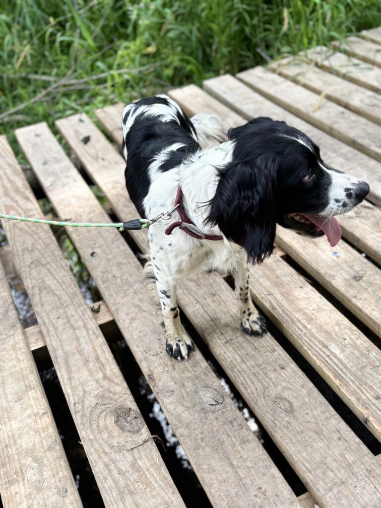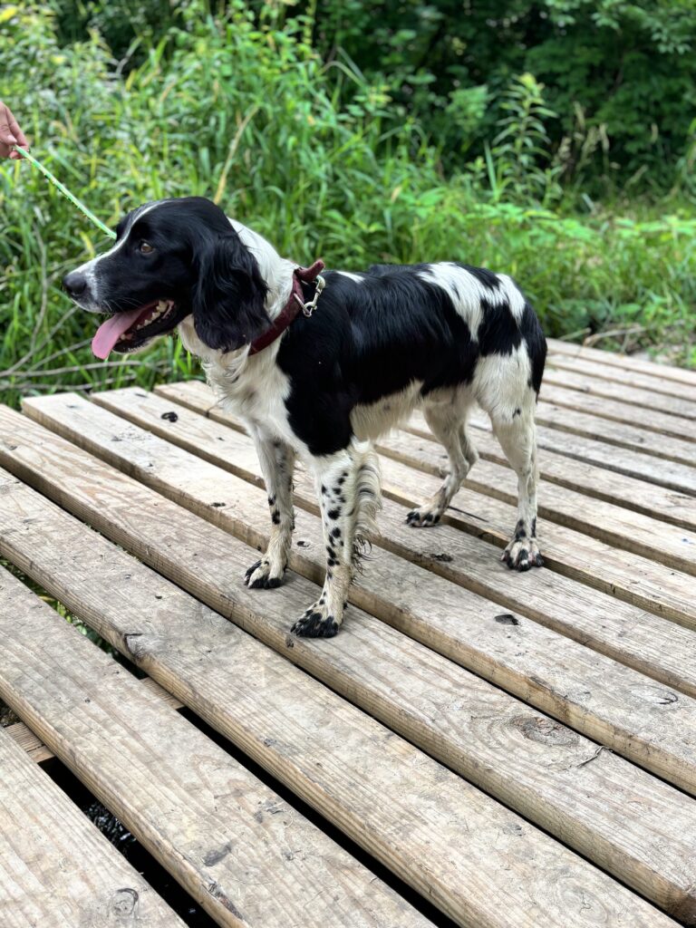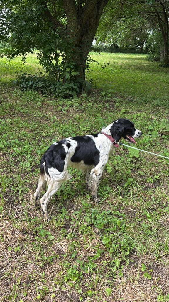 Male, Born on 06/12/2022. Skipper is a great breeding and hunting dog. He is from a champion pedigree and a pure bred English springer spaniel. He has his AKC Junior Hunt Test Title. He is a big rabbit dog. The whistle and voices commands he knows for field use are come and sit. He can follow voice command for hold and give. He's been table trained for holding birds. He knows the place boards and has had some training on them He is registered with AKC and there are many Field champions in his pedigree He is good around kids and other dogs.